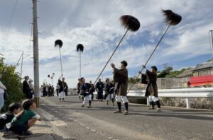 宇久島神社の秋の大祭「しゃぐま棒引き」が10月25日から2日間、神浦地区でありました。大名行列に模した行列が、町を練り歩く伝統行事に、事業や工事の関係者も参加しました。
