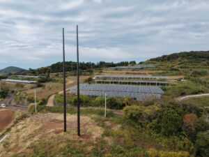 島内で発電した電気は、送電線を使って交直変換所に集め、交流から直流に変換した後、海底ケーブルで佐世保市本土に送られる予定です。